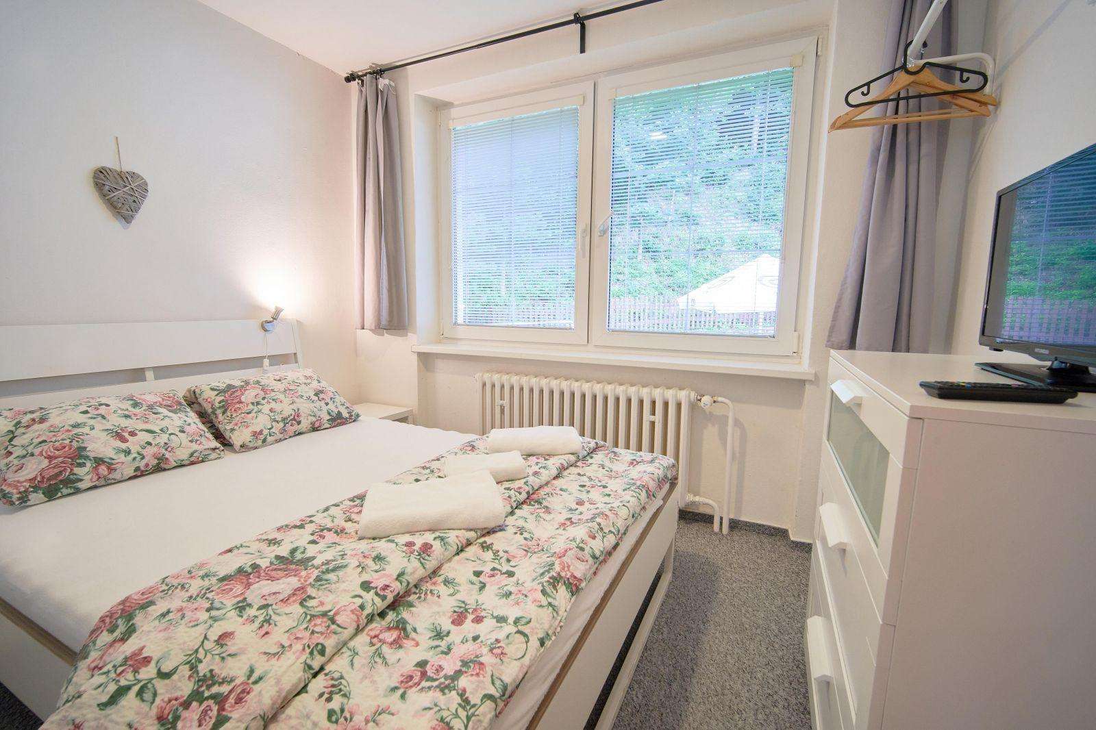 Rodinný apartmán Od 2340 Kč / noc Velikost: 30 m2 | Počet hostů: 5 Rodinný pokoj je určený pro početnější rodinu, která upřednostní soukromi. Rodinný pokoj je situovaný jako dva menší pokojíky, které dělí koupelna. Oba pokoje disponují TV. Jako jediný, se pokoj nachází v přízemí domu. Výhodou pokoje je blízkost jídelny s vybavenou kuchyní. V pokoji lze za poplatek využít dětskou postýlku (přistýlku), takže perfektně vyhovuje i mladým rodinám. Každý z hostů ma ,,nonstop,, přístup do jídelny ( společ. místnosti ), ve které je plně vybavená kuchyň, rychlovarná konvice,mikrovlná trouba, vestávná trouba a lednice. Zároveň penzion disponuje prostornou zahradou s dětským hřištěm, bazénem, grilem. Najdete také několik míst k posezení. Vše je pro pouze pro Vás ,,hosté penzionu,, |